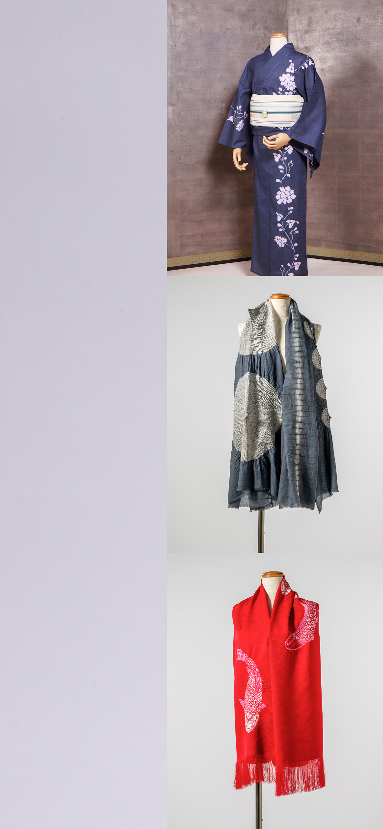Using time-honored Arimatsu–Narumi techniques, traditional motifs and living forms of nature emerge on kimono, yukata, scarves, and bags—reimagined for contemporary life with quiet innovation.
